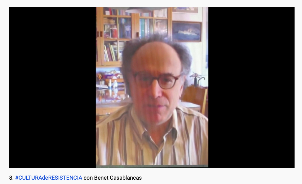 #CulturadeResistencia va ser un èxit inesperat i molt enriquidor. Com a material de treball i consulta existeix perfil específic a Instagram (@Culturaderesistencia) i una llista de reproducció a Youtube, on es poden trobar tots i cadascun dels diàlegs, a part d’altres materials. Fins a la data i en el seu conjunt han vist els vídeos prop de 4000 persones. Com a resum també vaig enregistrar tres càpsules finals exposant les conclusions basades en 7 temes o pilars bàsics que ens podem servir de guia per les necessitats futures a treballar per part dels projectes culturals: aquestes són, principalment, la descripció del nou paradigma, la idoneïtat d’observar versus actuar i les diverses estratègies a plantejar en el sector cultural juntament amb les possibilitats de monetització, la responsabilitat del mateix sector —i com s’ha arribat fins aquí—, el treball amb els públics i, finalment, l’educació com a element bàsic del canvi.