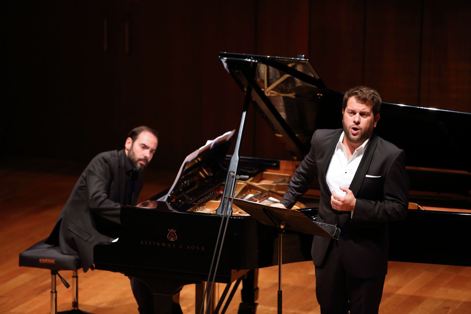 La primera part del programa, interpretada pel duo masculí, demostrà un treball profund d’harmonia, que ambdós artistes semblaren dominar perfectament, però també una gran sincronia, que quedà accentuada per la magnífica interpretació del pianista basc i les constants mostres d’enteniment entre ambdós músics.