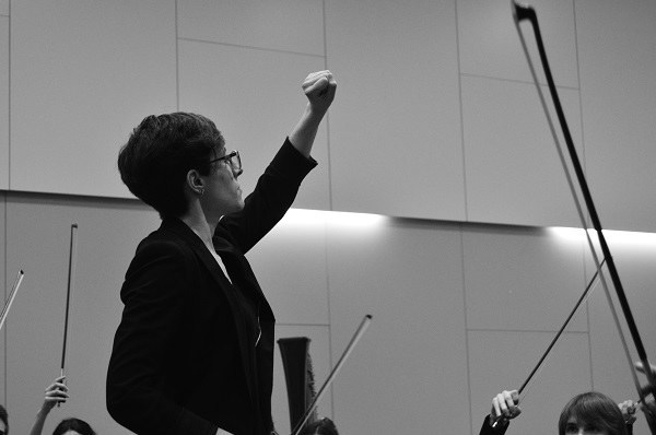 Irene Delgado Jiménez, con solo 20 años, es una destacada estudiante de dirección de orquesta en la ESMUC. La JOSC se puso en contacto con ella: “La verdad es que no pensábamos tener tanta suerte, ya que habíamos oído que Irene era la mejor de su promoción. Pero ella aceptó formar parte del proyecto y disfrutamos de su conocimiento y experiencia “.